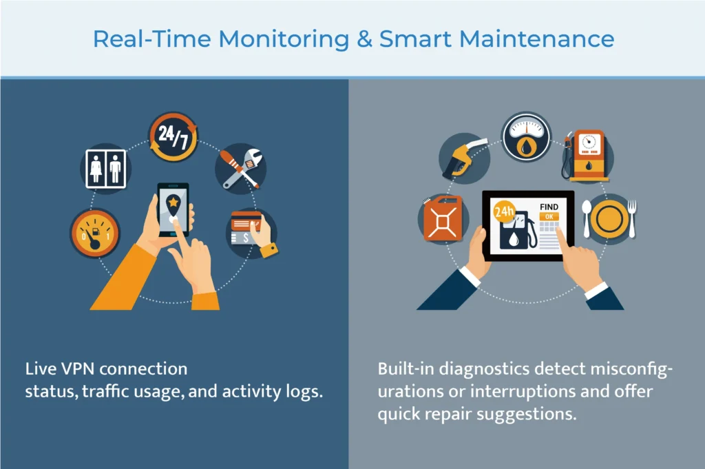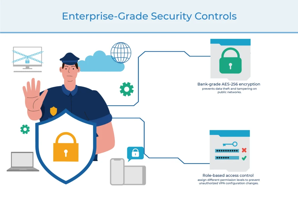 • Role-based access control: assign different permission levels to prevent unauthorized VPN configuration changes.