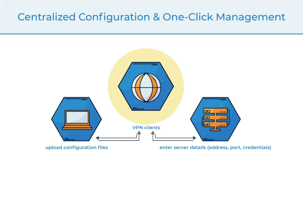 • Works with both self-hosted enterprise VPN servers and trusted third-party providers.